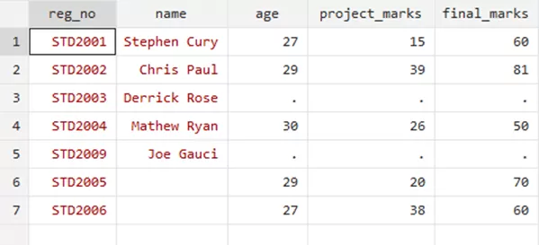 These registration numbers correspond to a row of data, relevant to one specific student. This means that the registration numbers are unique and not duplicated. Our objective here is to merge this data into corresponding sections within student’s name dataset. Specifically, we aim to include the age, project marks, and final marks for students like Stephen Curry and Chris Paul in the respective spaces. In cases where there are no details available, such as for Derrick, it results in missing data. For students like Matthew, we do possess data, but for students like Joe, we lack relevant information. Furthermore, for the registration numbers of STD2005 and STD2006, we lack the names. In these instances, we tend to insert the registration number in one place and the relevant data in another. However, we would not have access to their names. Keeping these considerations in mind, we can move forward with our command.